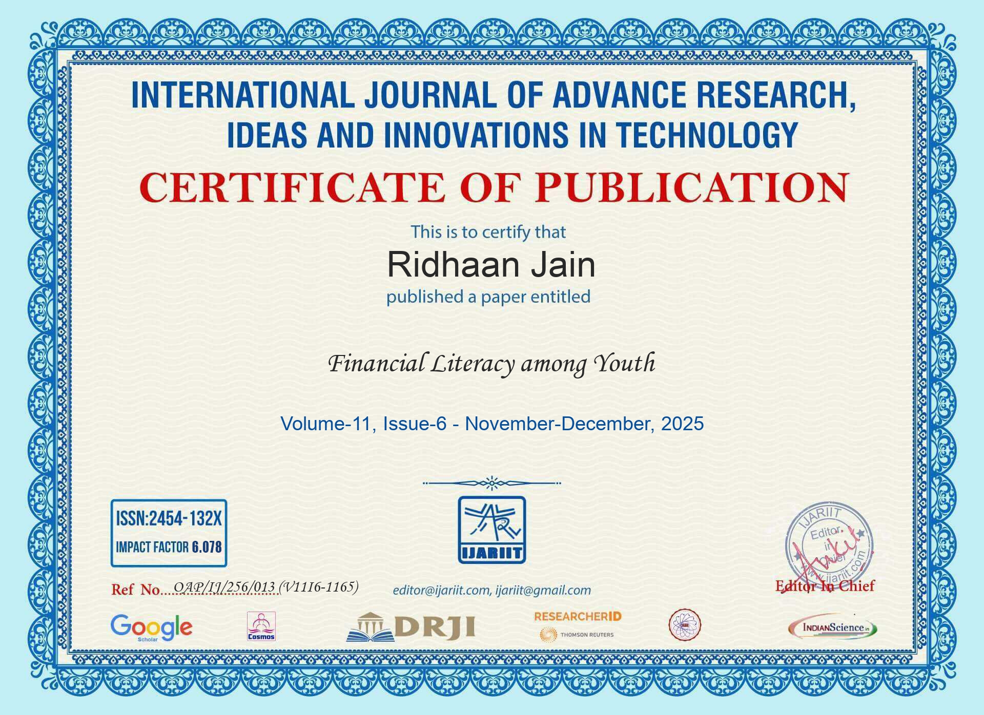 Research Paper Published by: Ridhaan Jain (within 5 hours) -