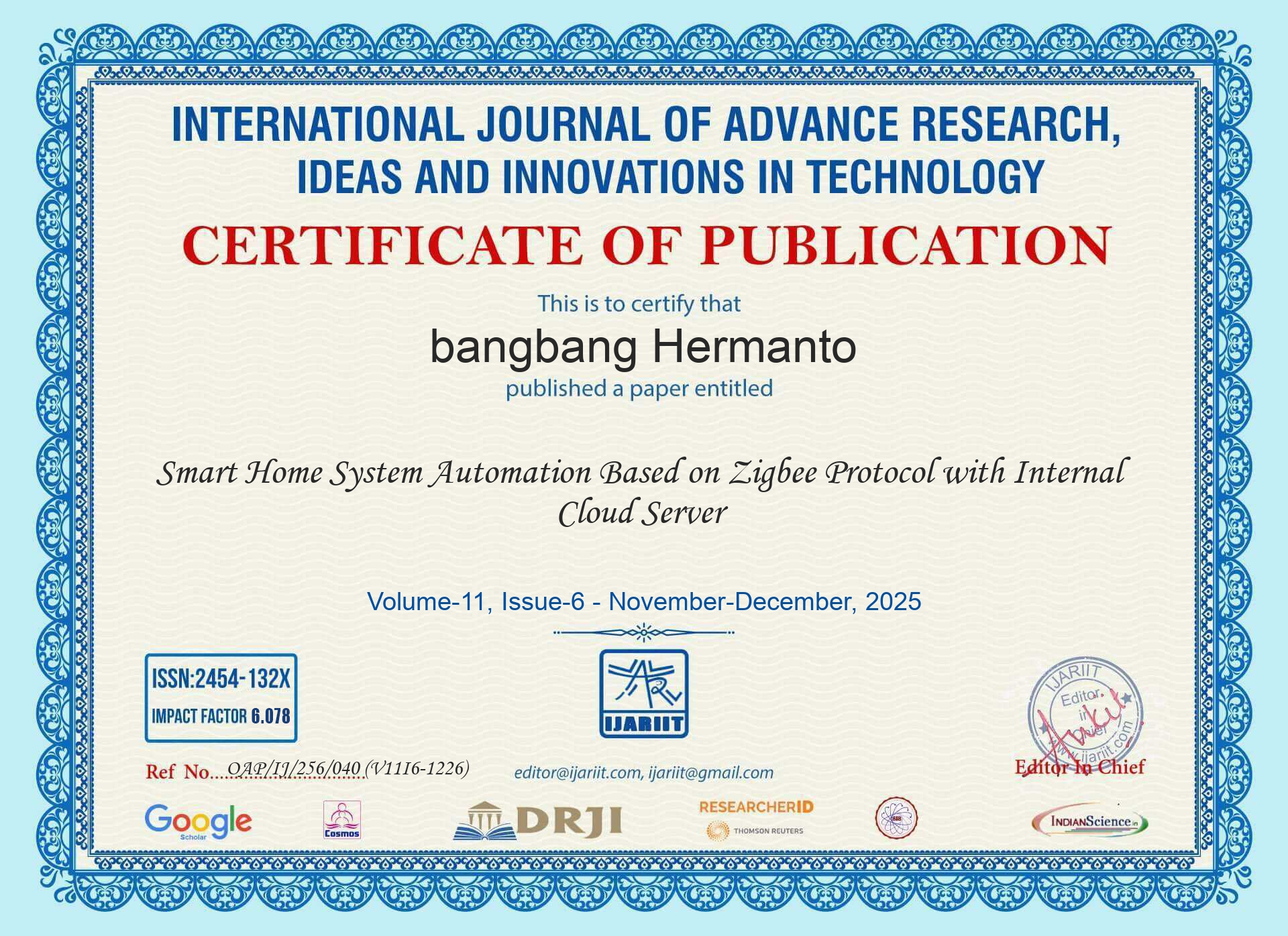 Electrical Engineering: Smart Home System Automation Based on Zigbee Protocol with Internal Cloud Server