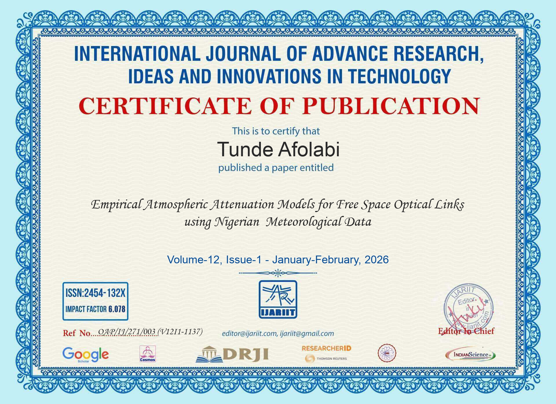 Research Paper Published by: Tunde Afolabi, Dr. R. O. Okeke (within 2 weeks)