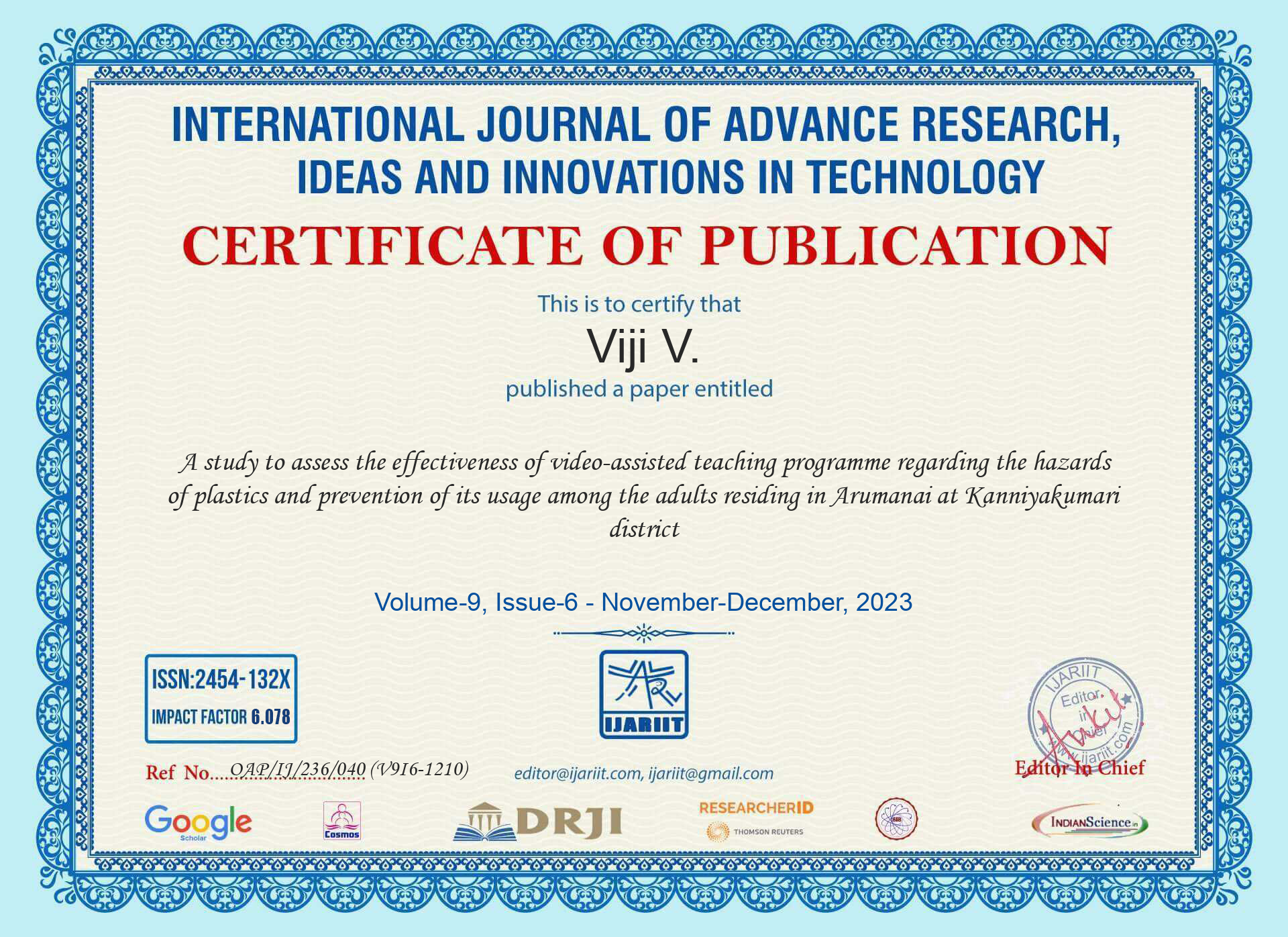 IJARIIT is an endeavour to promote research, innovation and new ideas in various fields of technology for