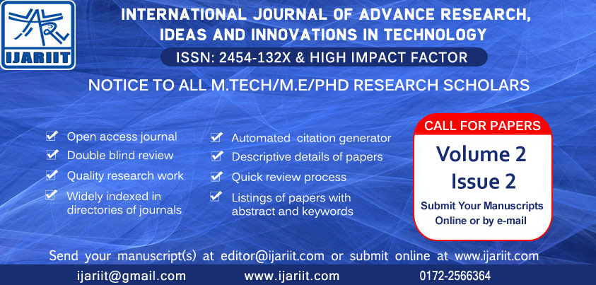 We are pleased to inform you that IJARIIT is going to launch its upcoming issue for the month of September-October, 2016. We would like to invite you to contribute a Research Paper for publication in IJARIIT. This journal covers all areas of Computer Science, Electronics Engineering, Information Technology, and all other streams of science. We […]